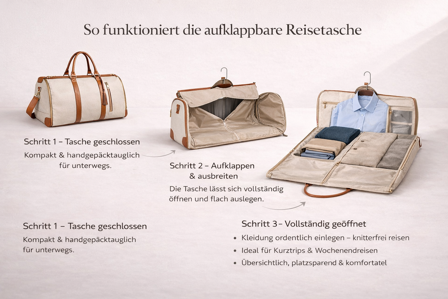 Sie ist ideal für Kurztrips, Geschäftsreisen, Arbeitstage und Wochenenden. Eine echte All-in-One-Lösung.